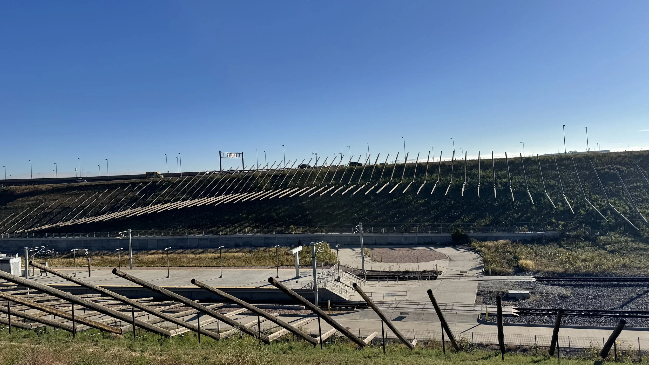 October 2025. The Shadow Array is 10 years old. This 7 acre installation at Denver’s International Airport is constructed of beetle-kill spruce logs, salvaged from the Rio Grande National Forest.